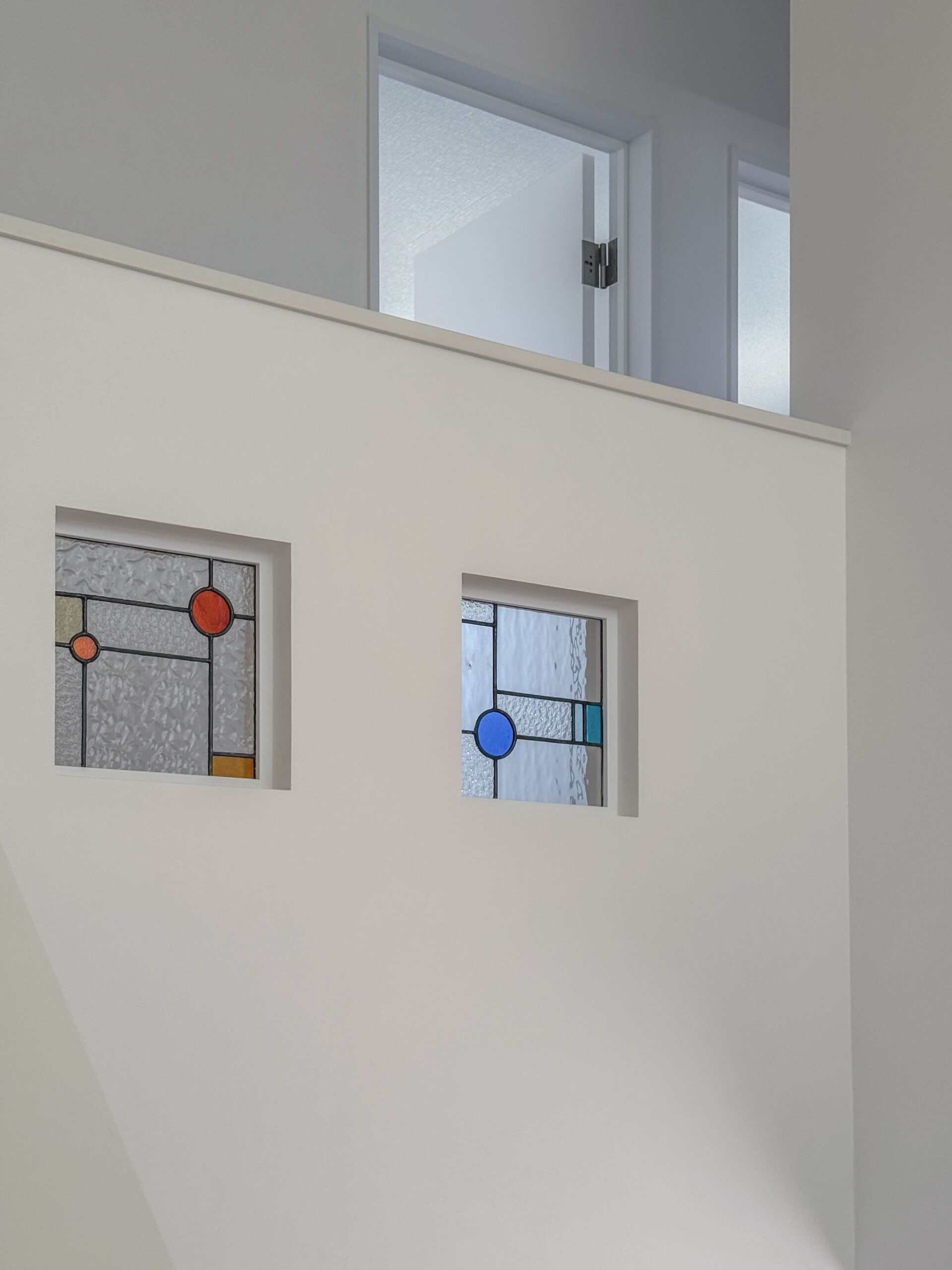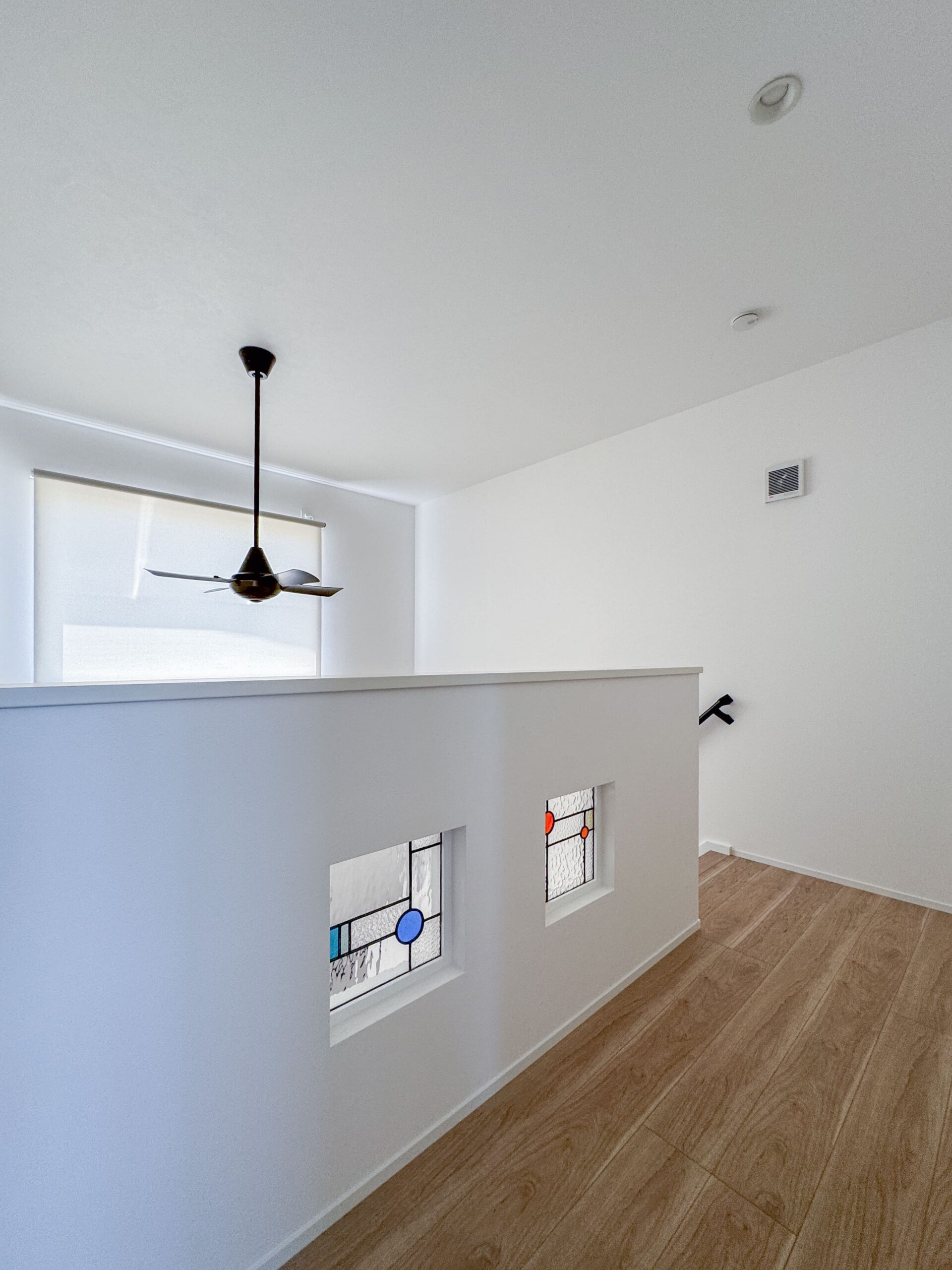 また個人的には一番見どころだと思っているT様のご親族が作られたステンドグラスが吹き抜け部分にあります。