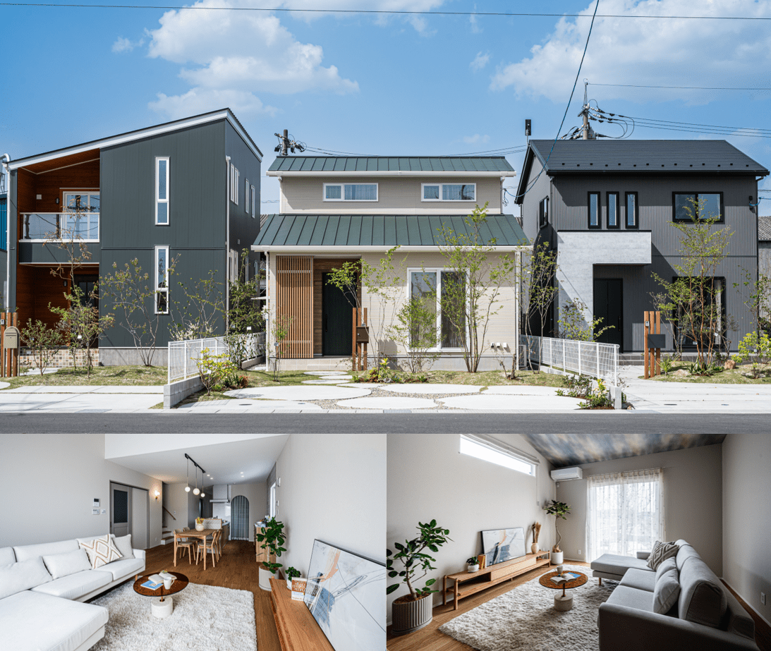 ※写真下左より:寺家駅前展示場・イーストヒルズ西条モデル