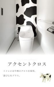 アクセントクロス トイレには牛柄のクロスを採用。 遊び心をプラス。