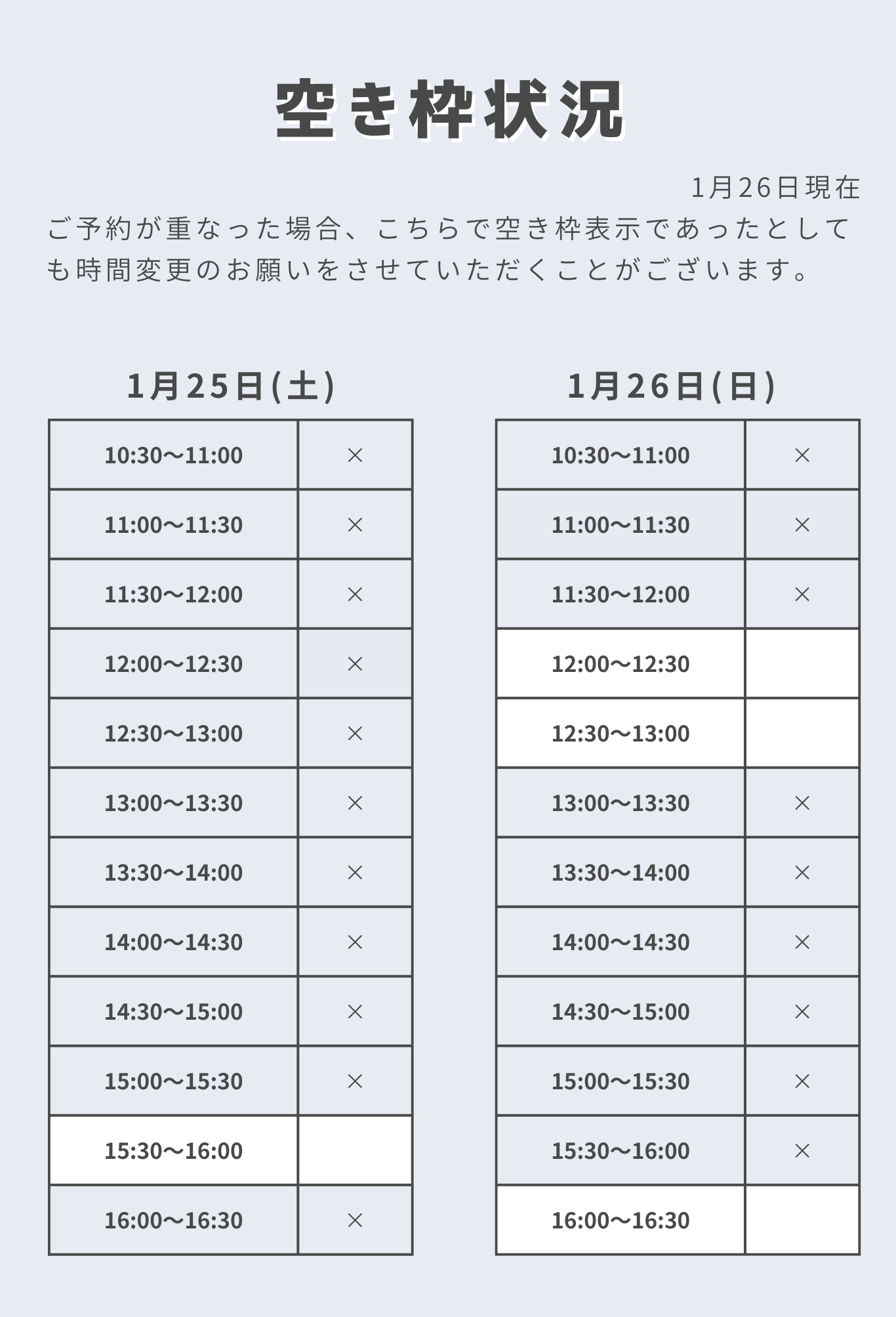 ●ご予約後はSMSにて希望枠が空いているかのご連絡をさせていただきます。その連絡をもってご予約を確定とさせていただきます。