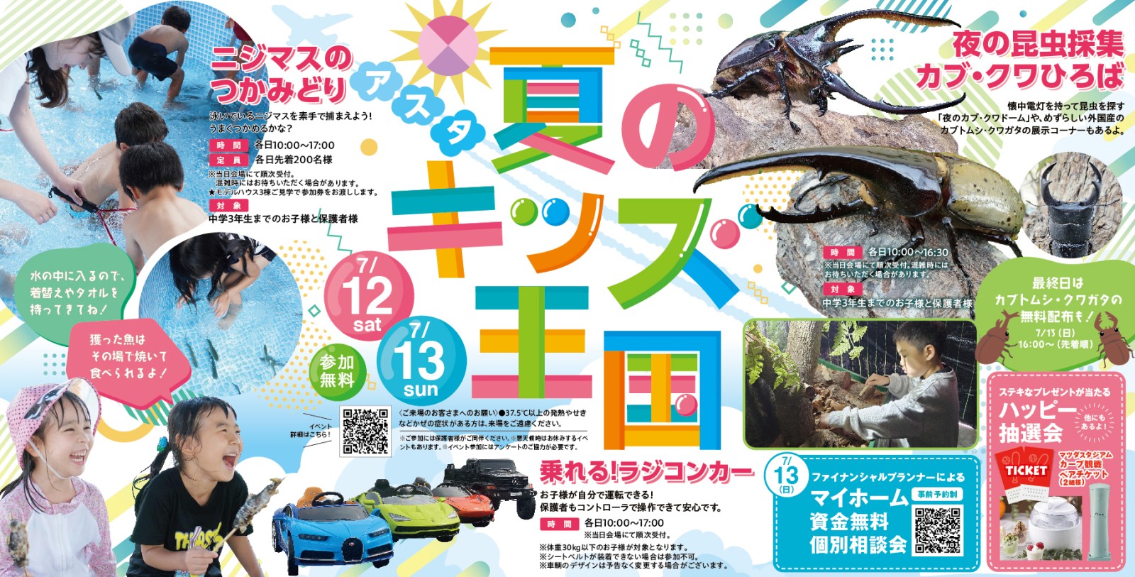 日曜日の夕方(7/13(日)16時~)には、お子様への 「カブトムシ・クワガタを無料配布」も!