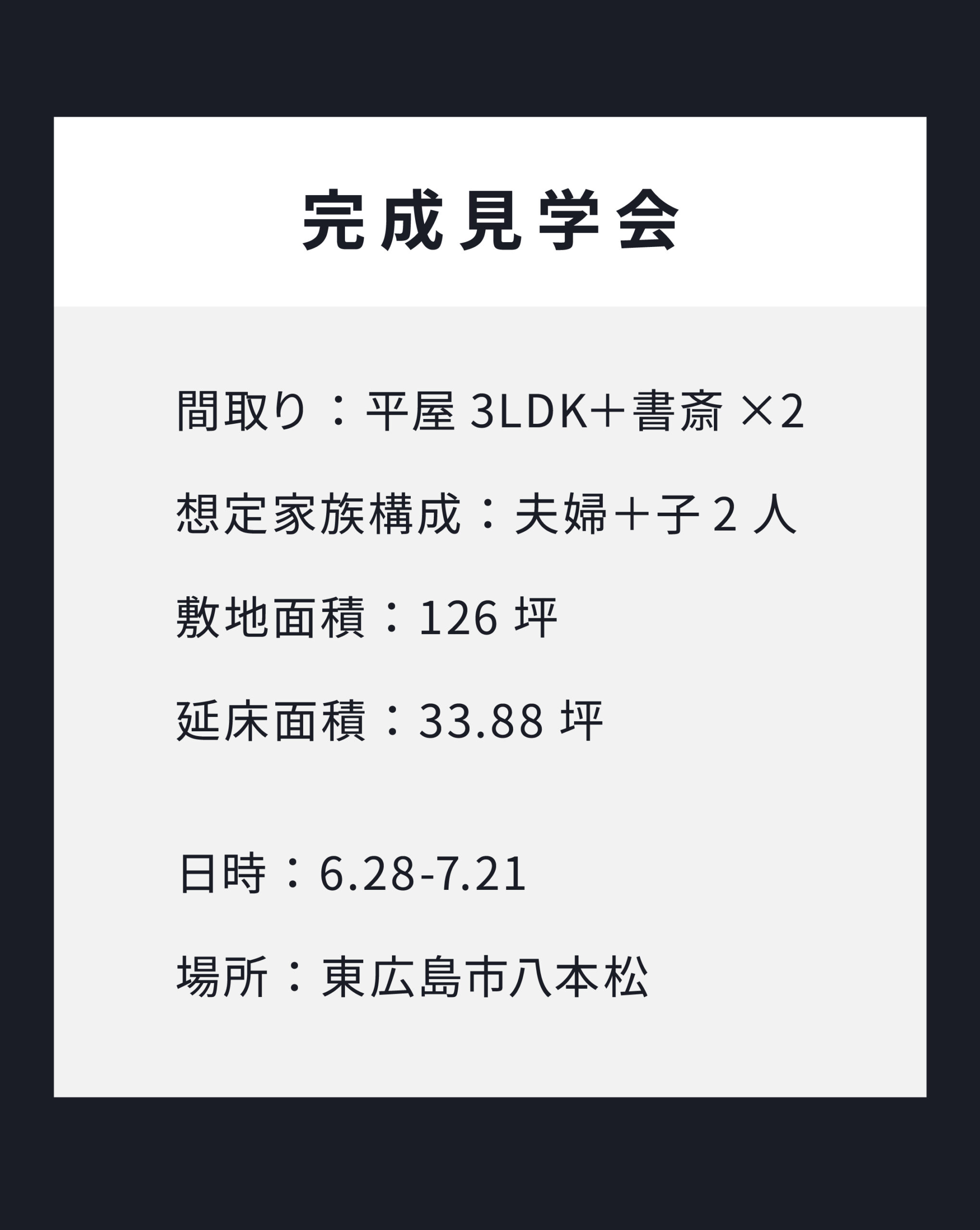 ●完成見学会はお施主様のお住まいをお借りしての開催となります。そのため小さなお子様をお連れの場合は必ず抱っこもしくは手を繋いでご入場ください。