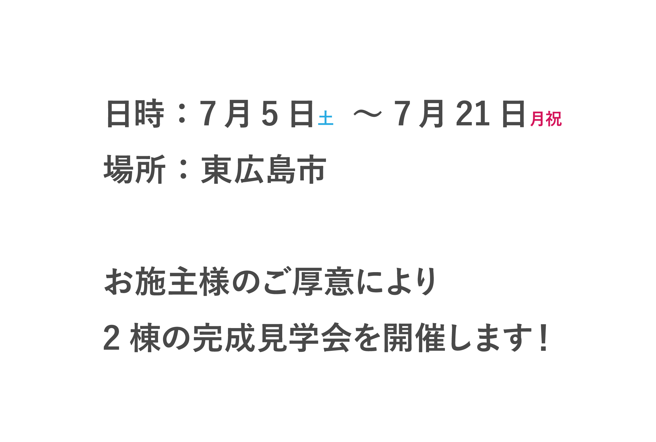 【東広島】2棟同時完成見学会【7.5-7.21】