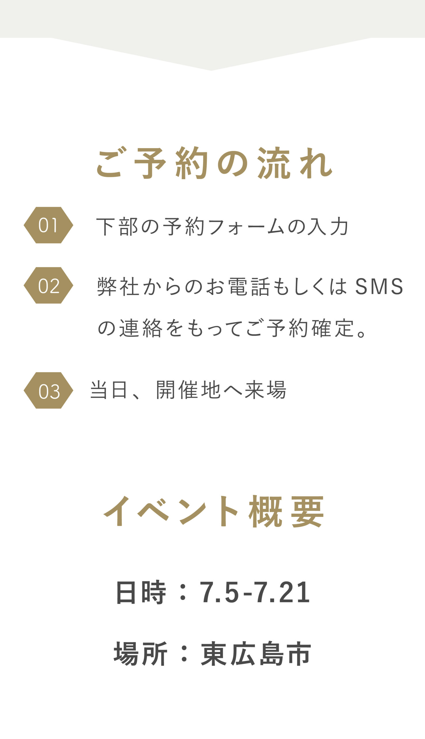 ●ご予約は、担当スタッフからのご連絡をもって確定となります。ご予約時間枠が重なった場合、日程の調整をお願いすることがございますのでご了承ください。