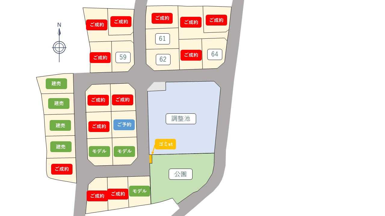 | 61号地 | 177.72㎡ | 53.76坪 | 1,290.2万円 | 24.0万円 |