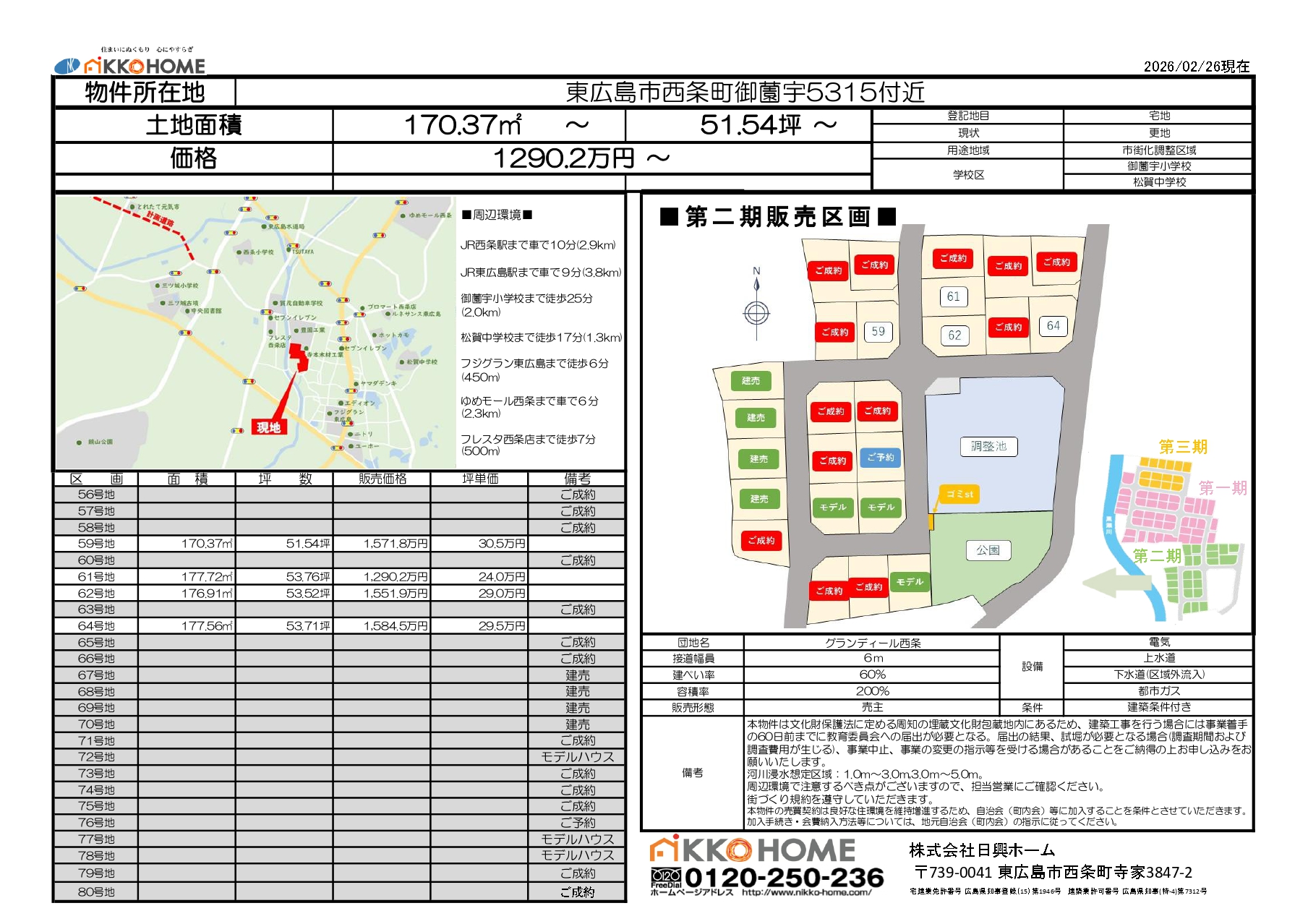 | 59号地 | 170.37㎡ | 51.54坪 | 1,571.8万円 | 30.5万円 |