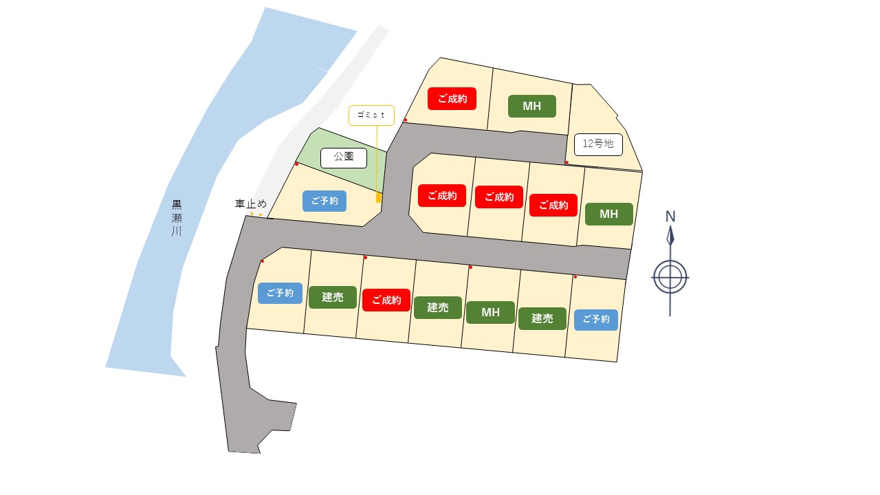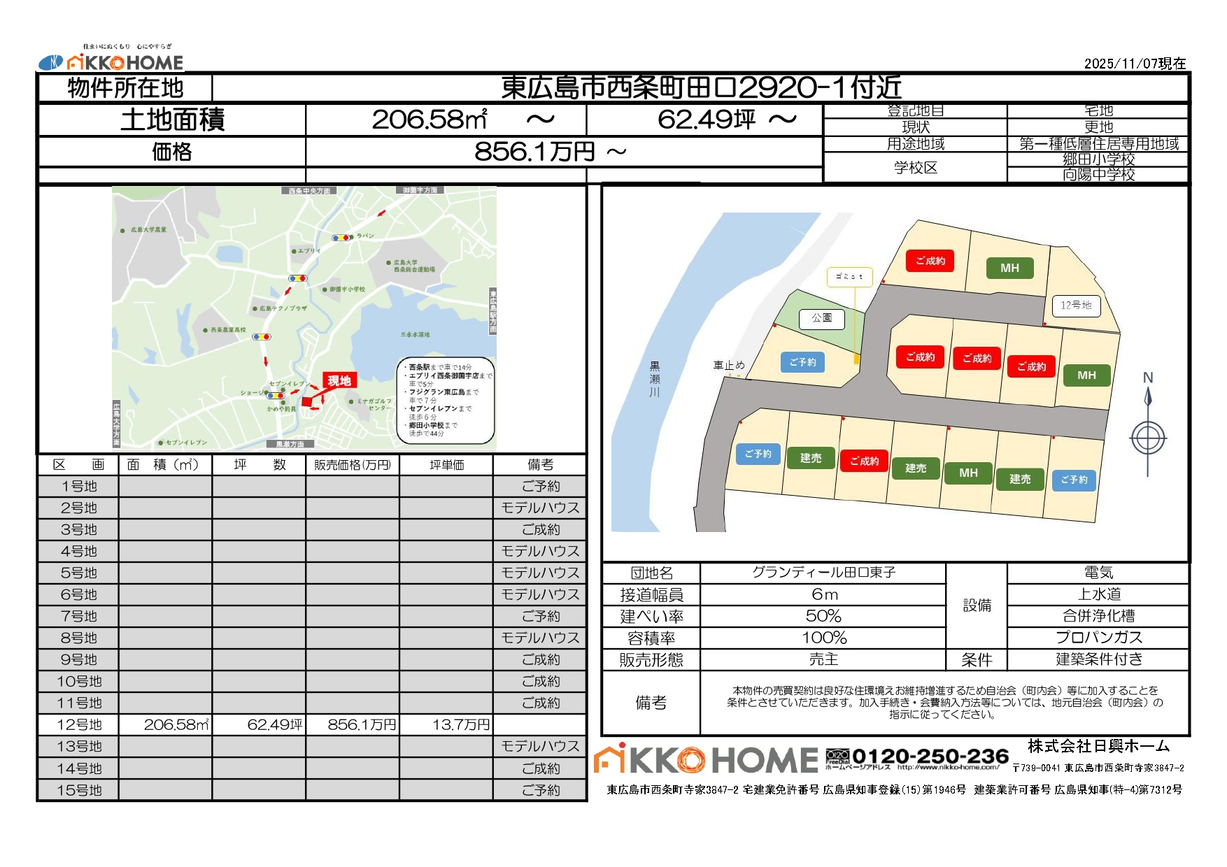 | 12号地 | 206.58㎡ | 62.49坪 | 856.1万円 | 13.7万円 |