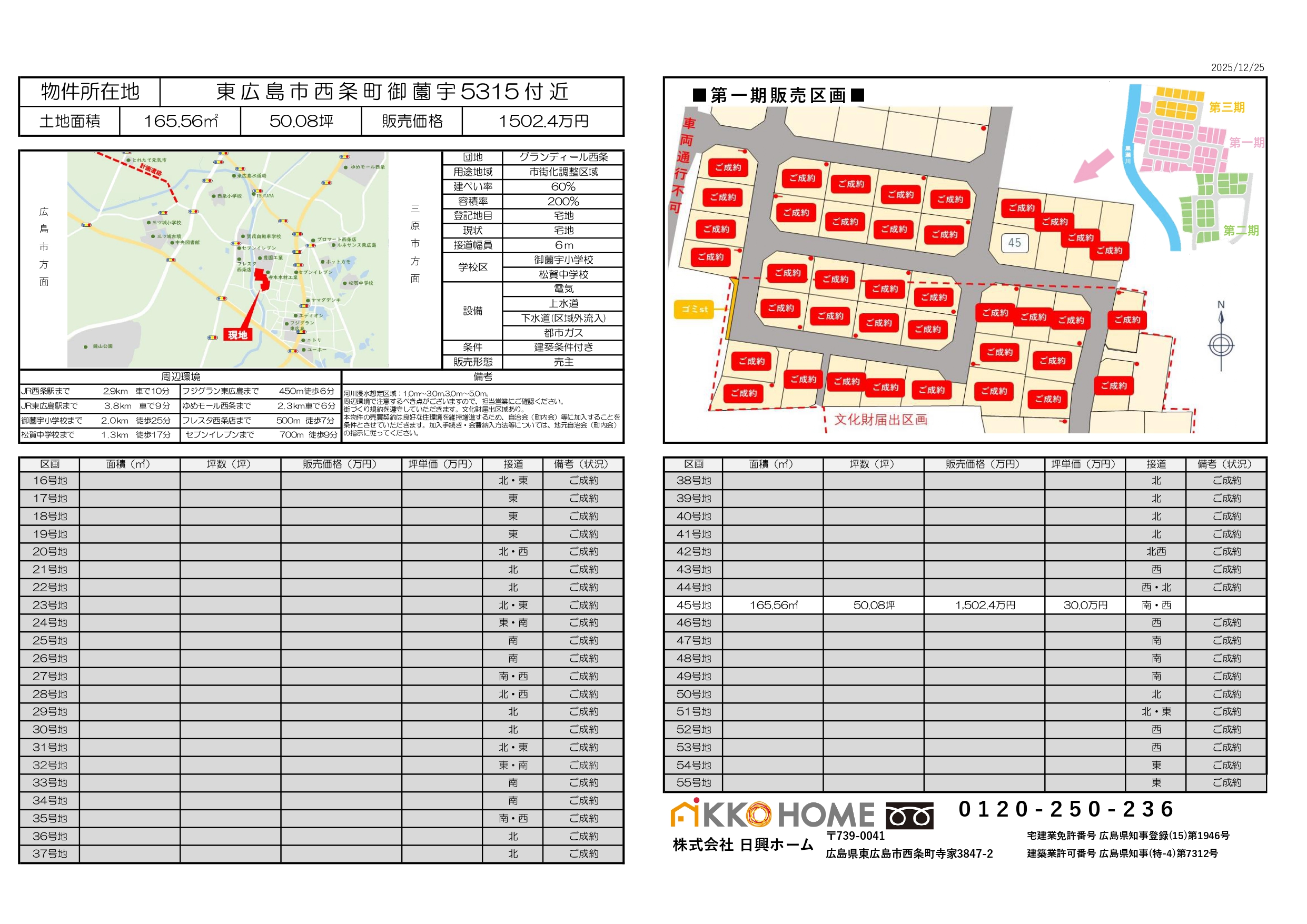 | 42号地 | 165.56㎡ | 50.08坪 | 1,502.4万円 | 30.0万円 |