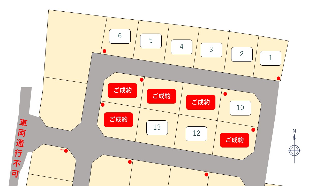 | 13号地 | 171.82㎡ | 51.97坪 | 1,481.1万円 | 28.5万円 |