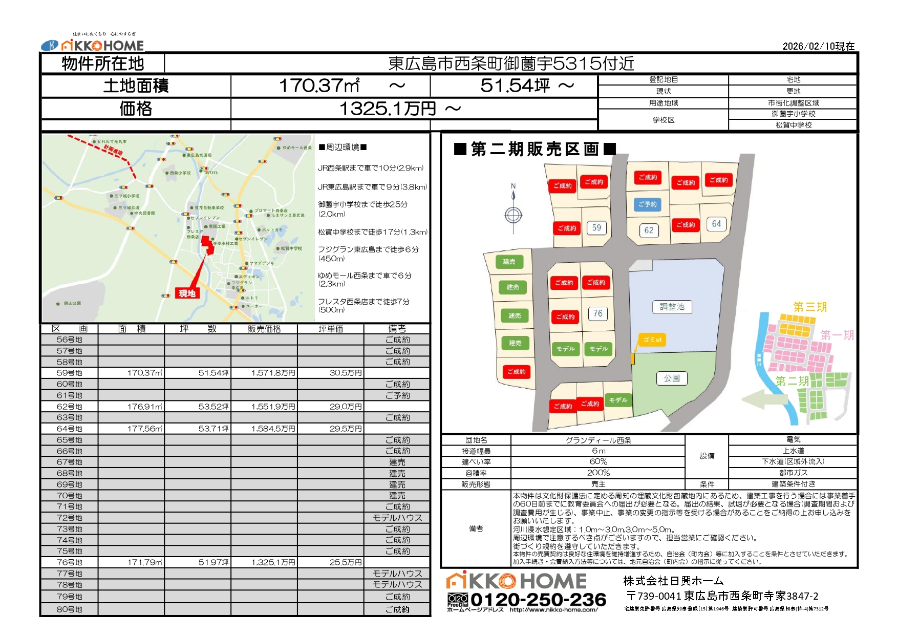 | 76号地 | 171.79㎡ | 51.97坪 | 1,325.1万円 | 25.5万円 |