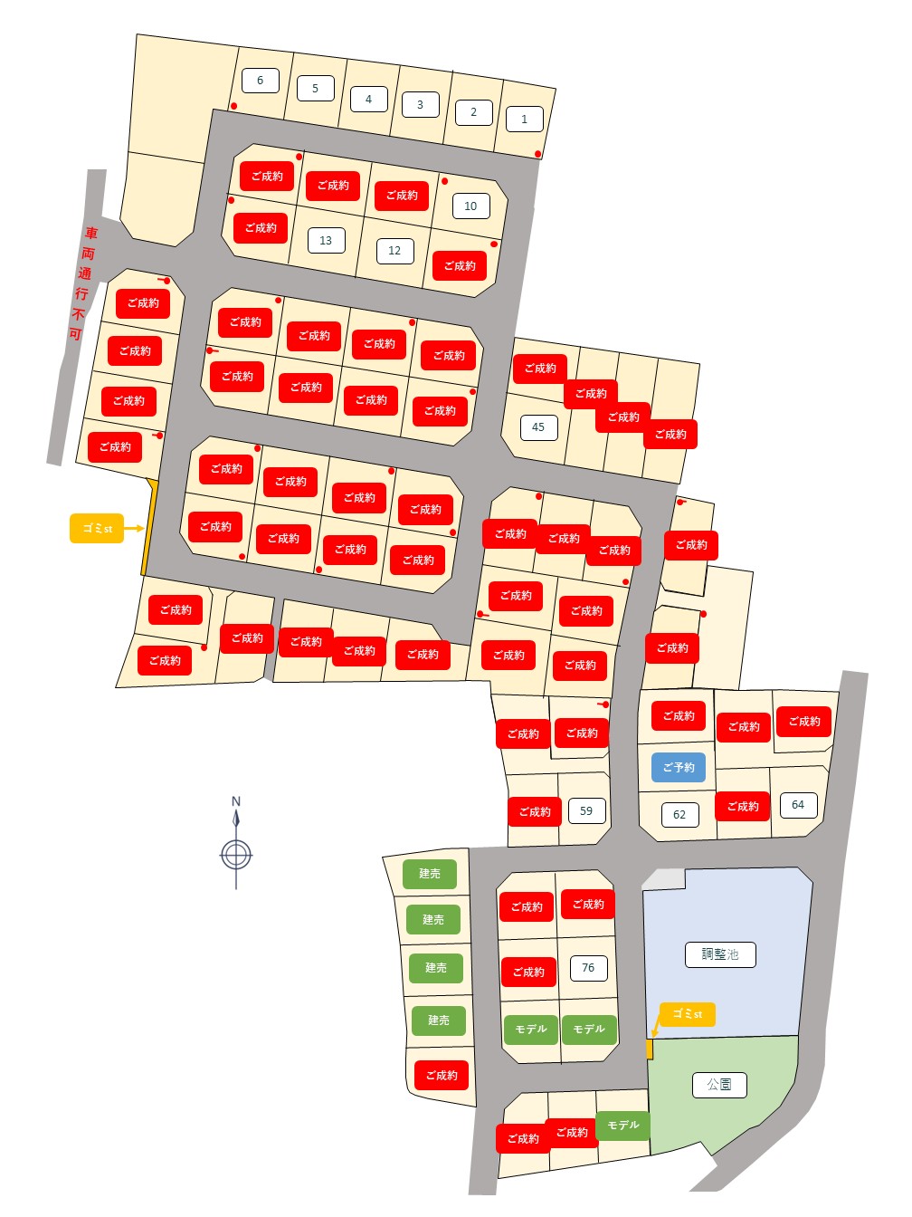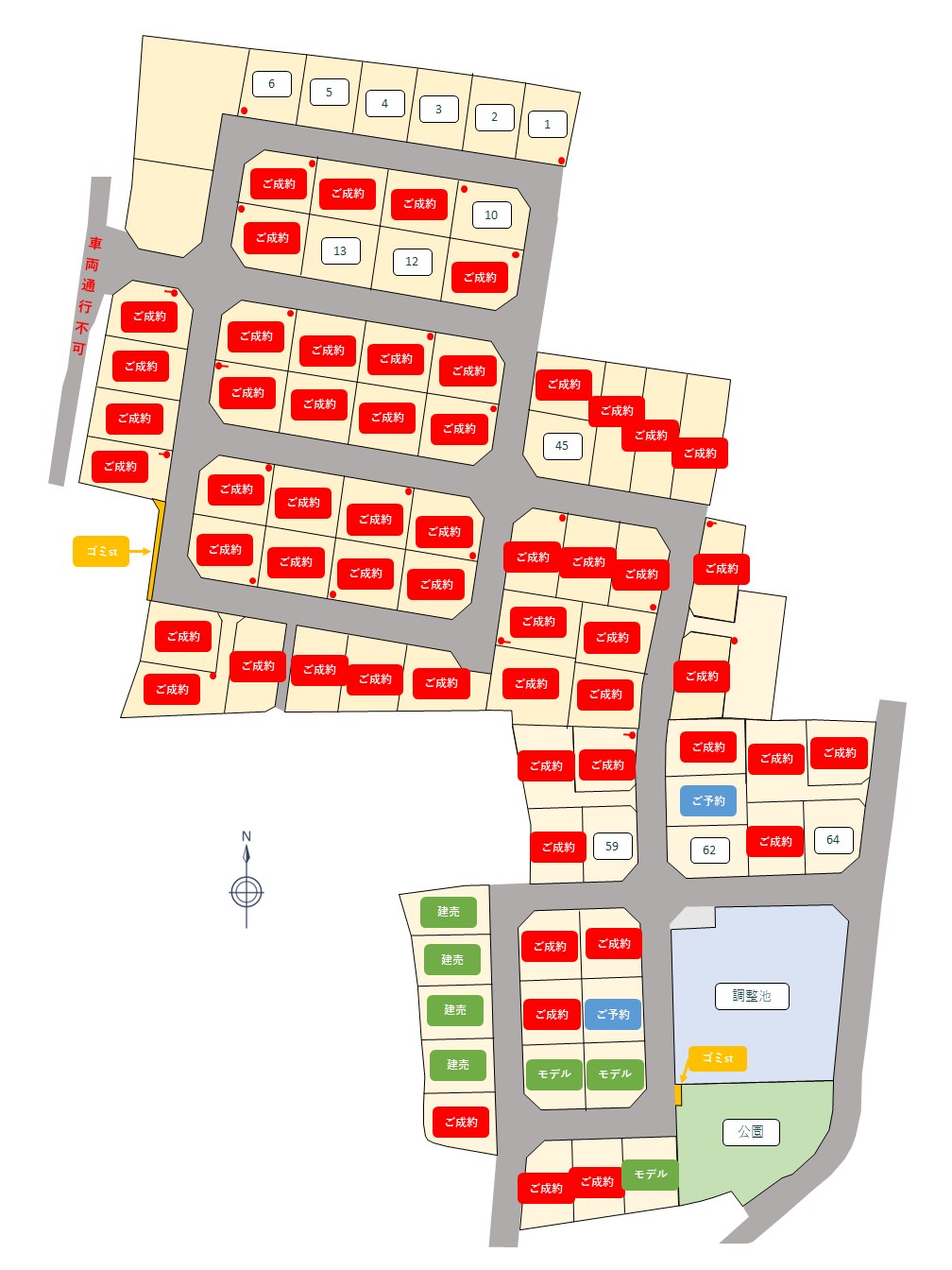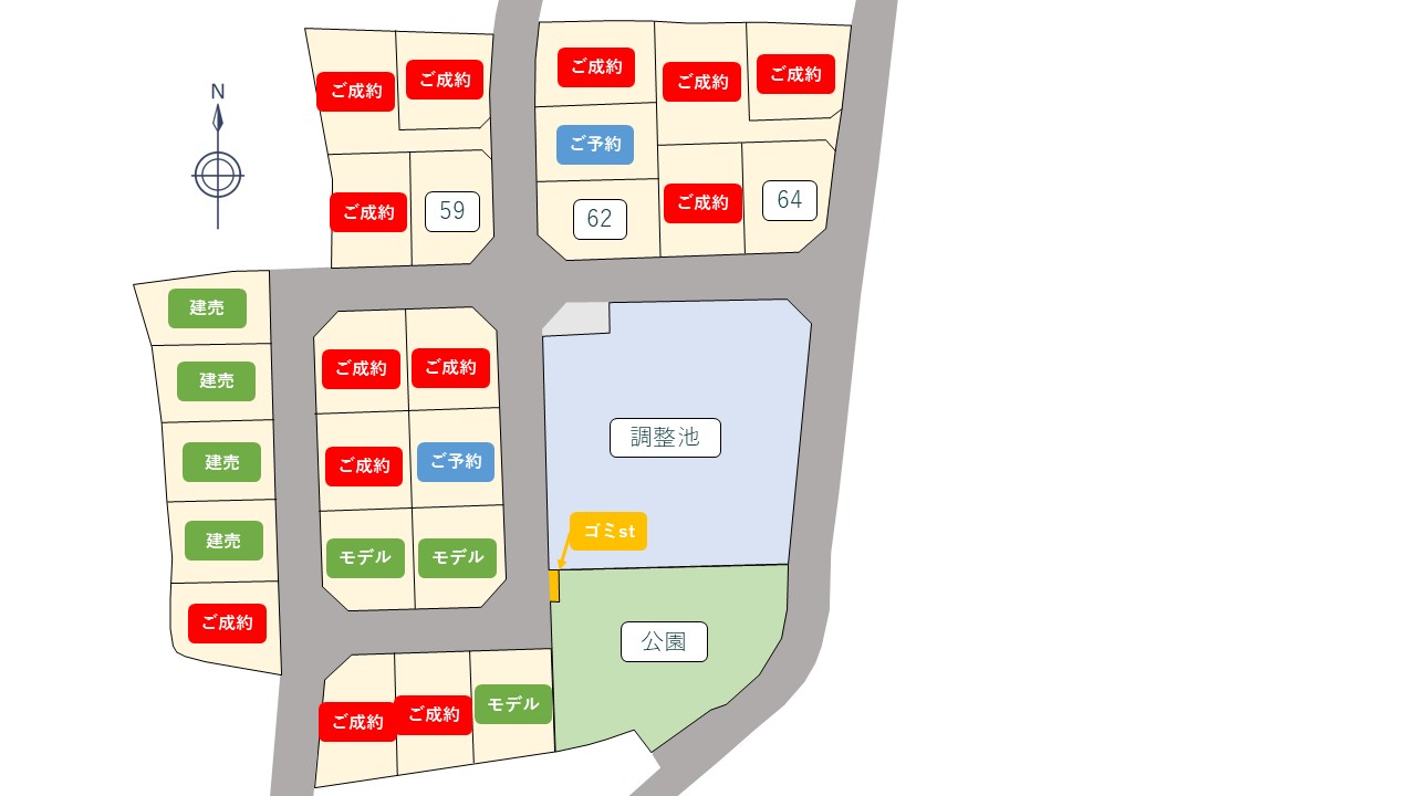 | 64号地 | 177.56㎡ | 53.71坪 | 1,584.5万円 | 29.5万円 |