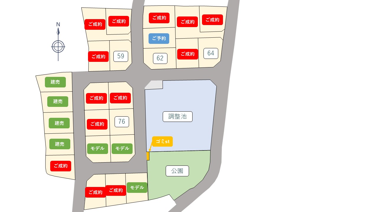 | 62号地 | 176.91㎡ | 53.52坪 | 1,551.9万円 | 29.0万円 |