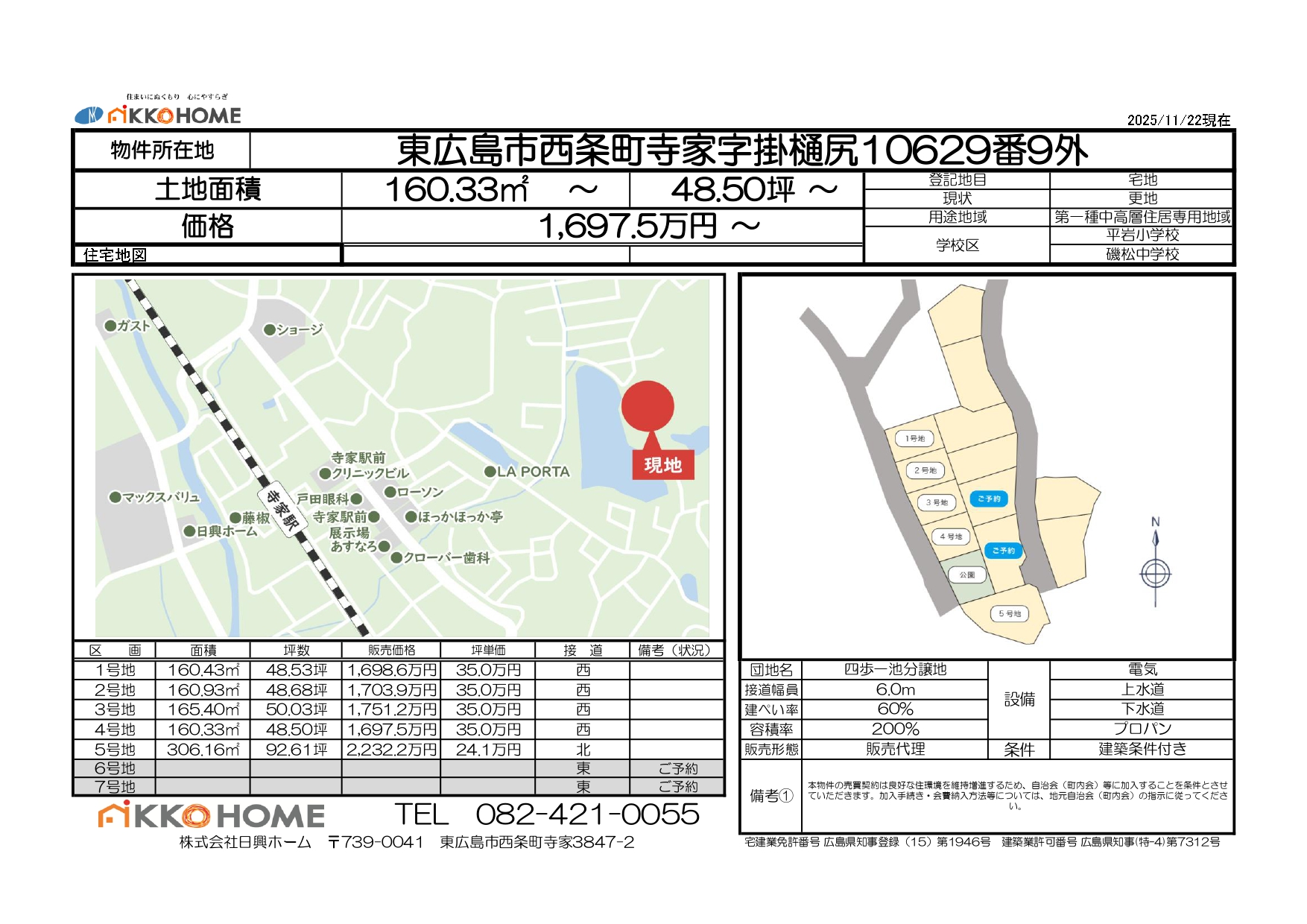 | 4号地 | 160.33㎡ | 48.50坪 | 1697.5万円 | 35.0万円 |