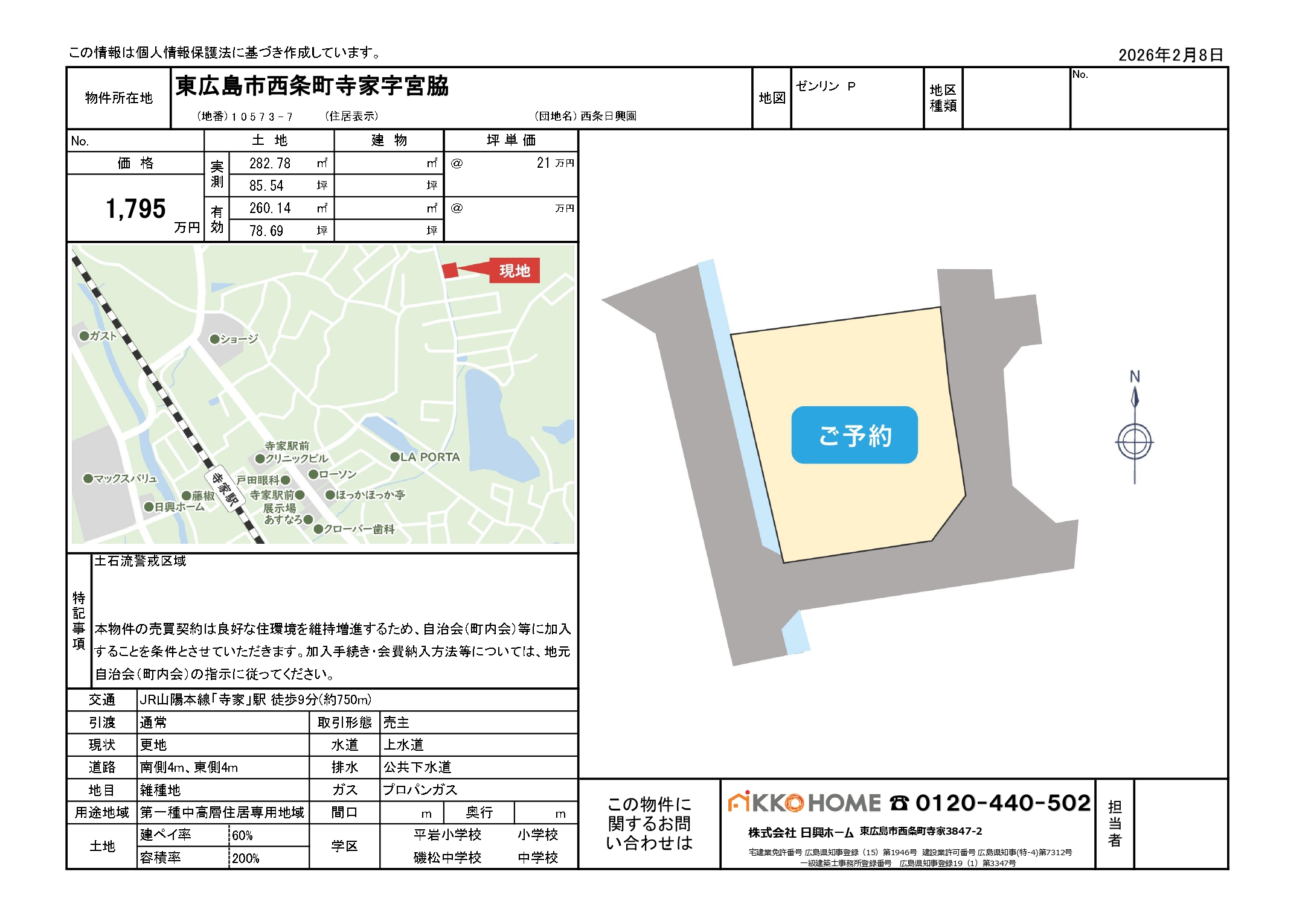 - JR山陽本線「寺家」駅 徒歩9分(約750m)